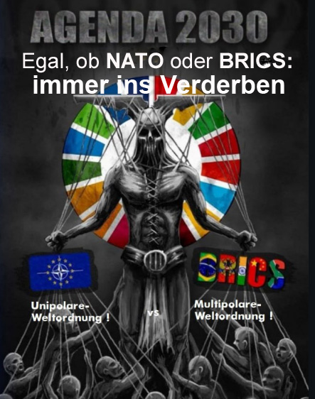 Agenda 2030. Egal, ob Nato (Unipolare Weltordnung) oder BRICS (Multipolare Weltordnung): Immer ins Verderben