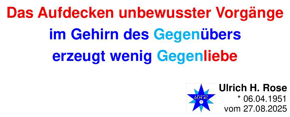 Das Aufdecken unbewusster Vorgänge im Gehirn des Gegenübers erzeugt wenig Gegenliebe. Ulrich H. Rose vom 27.08.2025