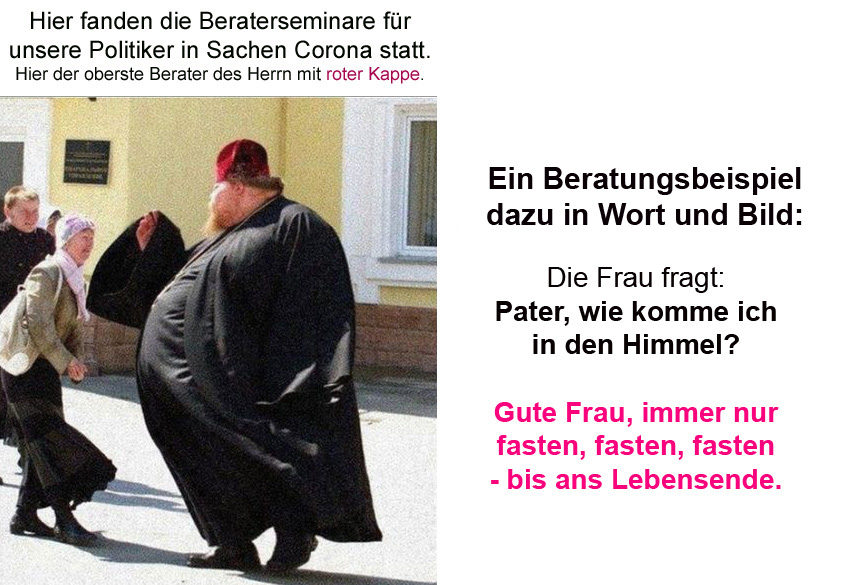 Hier fanden die Beraterseminare für unsere Politiker in Sachen Corona statt. Hier der oberste Berater des Herrn mit roter Kappe.