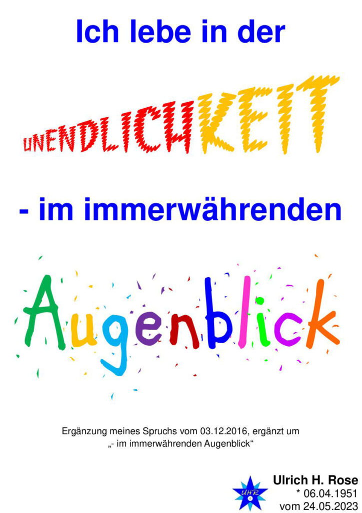 Ich lebe in der Unendlichkeit – im immerwährenden Augenblick. Ulrich H. Rose vom 24.05.2023