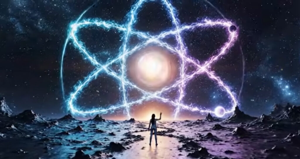 Die Quantenmechanik lässt es nicht zu, dass es einen leeren Raum gibt. Quantenfelder zittern und fluktuieren und erschaffen immer wieder – aus sich heraus – NEUES, die tief unter der sichtbaren Realität immer wieder NEUES erschafft.