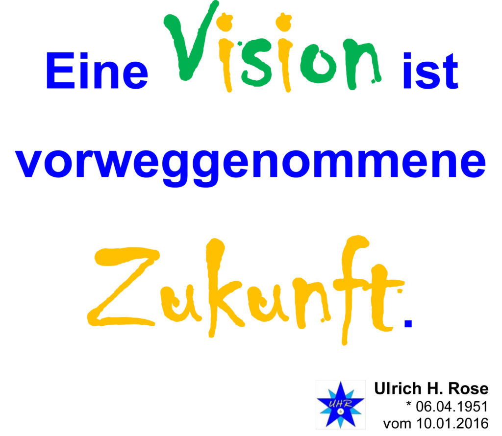 Der Vorgängerspruch dazu dürfte am 25.12.2004 in „Das Zeitphänomen gelöst“ entstanden sein: Eine Vision ist für mich vorweggenommene Zukunft.