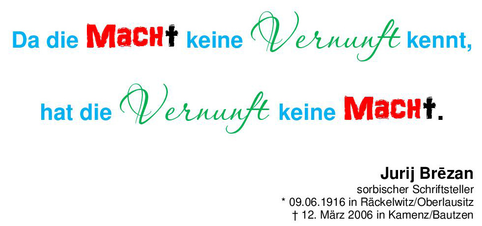 Da die Macht keine Vernunft kennt hat die Vernunft keine Macht. Jurij Brēzan