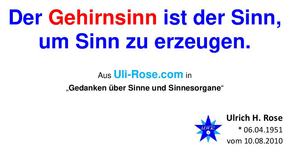 Der Gehirnsinn ist der Sinn, um Sinn zu erzeugen. Ulrich H. Rose vom 10.08.2010