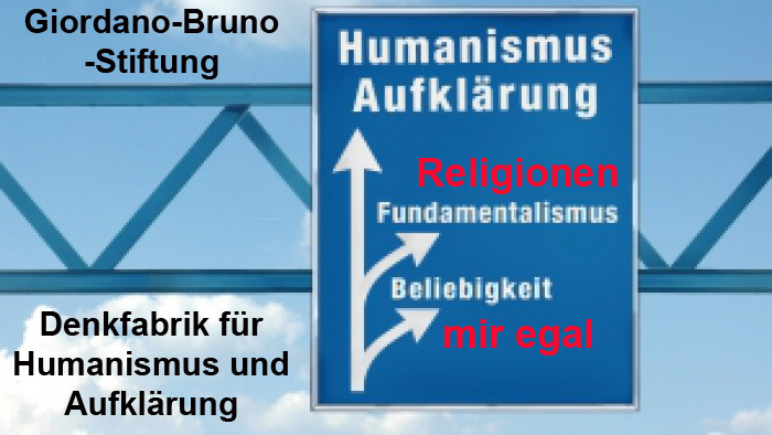 Giordano-Bruno-Stiftung. Denkfabrik für Humanismus und Aufklärung. Aufklärung, Religionen, mir egal, Fundamentalismus, Beliebigkeit.