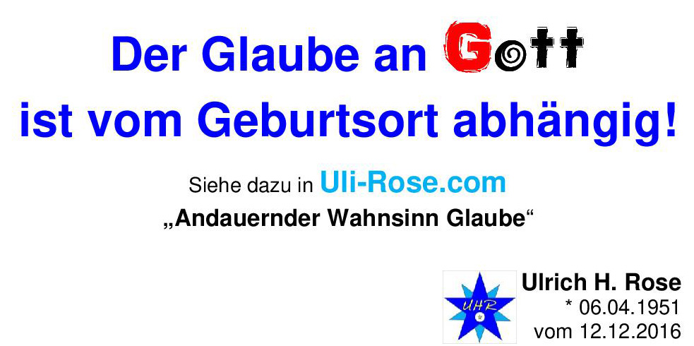 Der Glaube an Gott ist vom Geburtsort abhängig! Ulrich H. Rose vom 12.12.2016