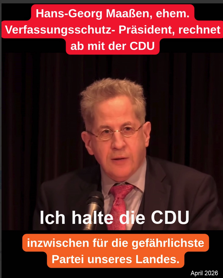 Hans-Georg Maaßen (ehemaliger Verfassungsschutz-Präsident) rechnet mit der CDU ab: Ich halte die CDU inzwischen für die gefährlichste Partei unseres Landes. April 2026