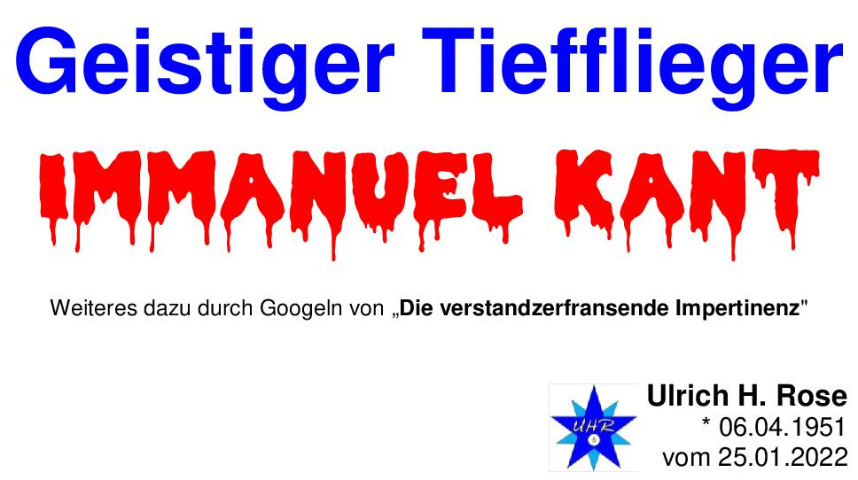 Geistiger Tiefflieger Immanuel Kant. Ulrich H. Rose vom 25.01.2022