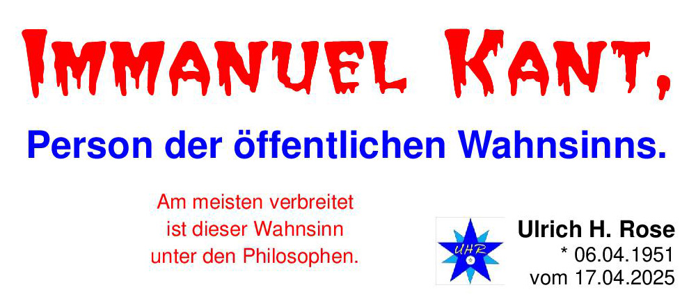 Immanuel Kant, Person der öffentlichen Wahnsinns. Am meisten verbreitet ist dieser Wahnsinn unter den Philosophen. Ulrich H. Rose vom 17.04.2025