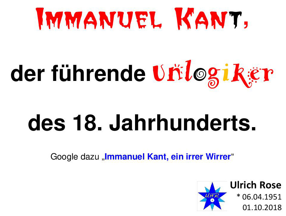 Immanuel Kant der führende Unlogiker des 18. Jahrhunderts. Ulrich H. Rose vom 01.10.2018