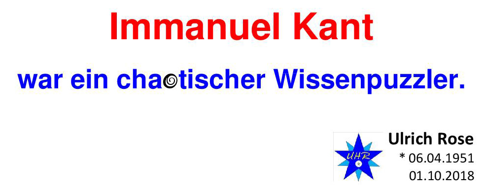 Immanuel Kant war ein chaotischer Wissenpuzzler. Ulrich H. Rose vom01.10.2018