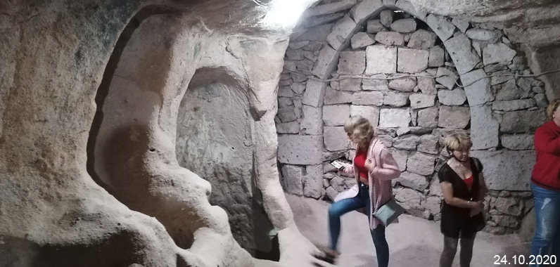 Unser erster Stopp am 24.10. gegen Mittag: Ein unterirdischer Stall – aus dem Stein gehauen: