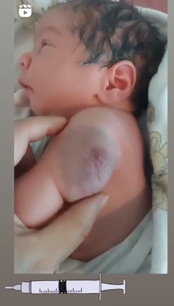 Ein bedauernswertes Baby, kurz nachdem die „wirkungsvolle“ Corona-Giftspritze injiziert wurde.