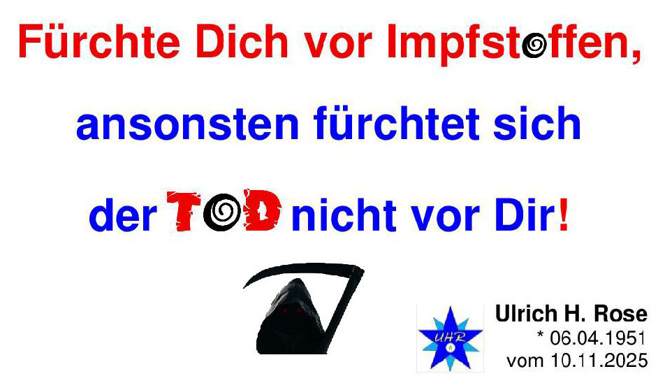 Fürchte Dich vor Impfstoffen, ansonsten fürchtet sich der Tod nicht vor Dir! Ulrich H. Rose vom 10.11.2025