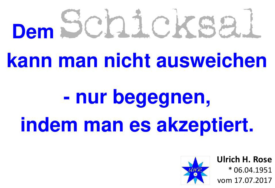 Dem Schicksal kann man nicht ausweichen – nur begegnen, indem man es akzeptiert. Ulrich H. Rose vom 17.07.2017