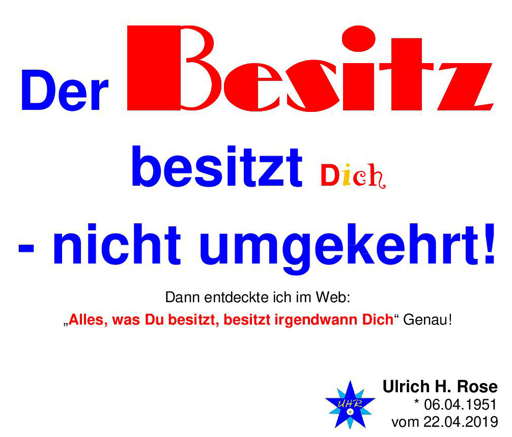 Der Besitz besitzt Dich – nicht umgekehrt! Ulrich H. Rose vom 24.09.2019