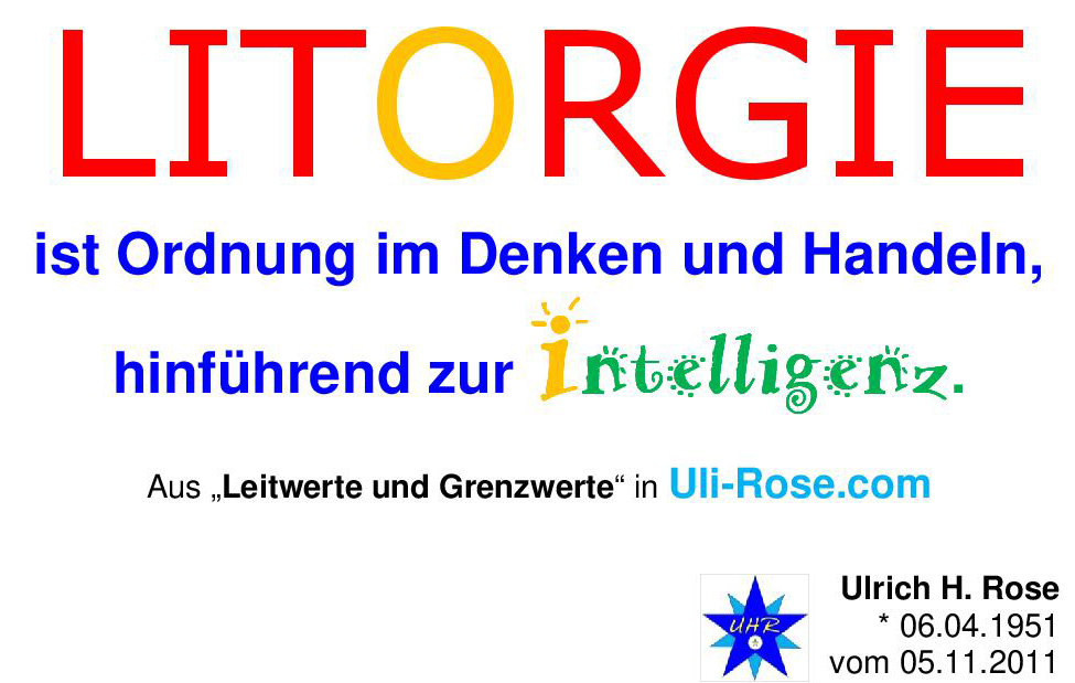 Litorgie ist Ordnung im Denken und Handeln, hinführend zur Intelligenz. Ulrich H. Rose vom 05.11.2011