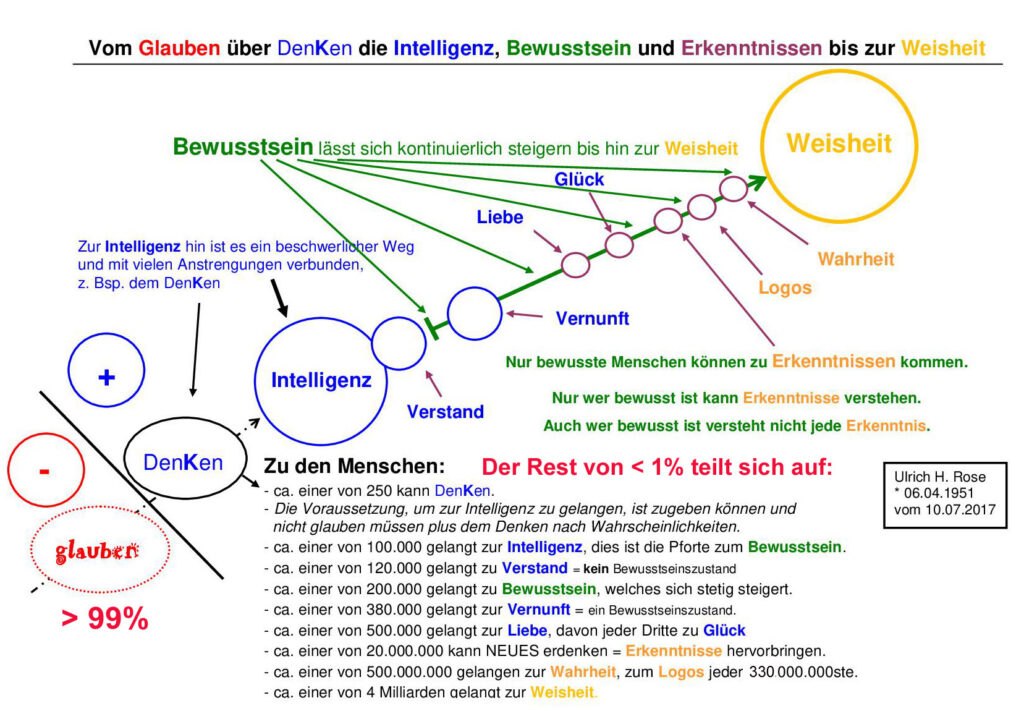 Vom Glauben über DenKen die Intelligenz, Verstand hin zu Bewusstsein, Erkenntnissen zur Weisheit. Ulrich H. Rose vom 10.07.2017