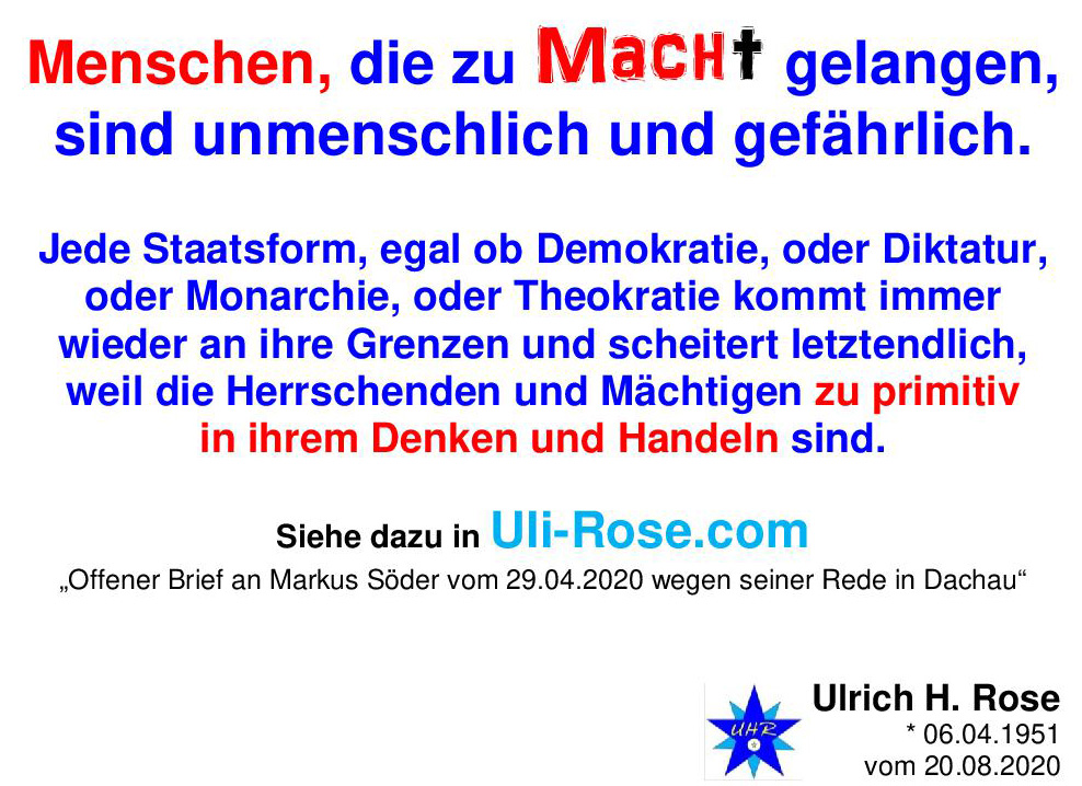 Markus, höre sofort mit diesem Coronawahnsinn auf, der Dein bayerisches Volk extrem belastet in finanzieller und in mentaler Hinsicht. Und denke an die Kinder Markus. Hast Du überhaupt eine Spur von einem Gewissen, oder gehen meine Worte hier – gerichtet an den Bub Markus – völlig an Dir vorbei?
