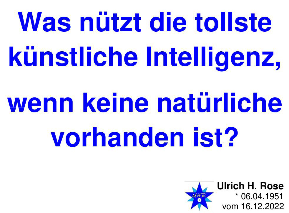 Was nützt die tollste künstliche Intelligenz, wenn keine natürliche vorhanden ist? Ulrich H. Rose vom 16.12.2023