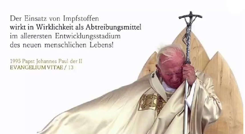 Der Einsatz von Impfstoffen wirkt in Wirklichkeit als Abtreibungsmittel im allerersten Eintwicklungsstadium des neuen menschlichen Lebens! 1995 Papst Johannes Paul der II. EVAGELIUM VITAE / 13