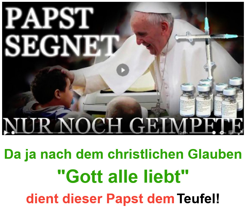 Papst segnet nur noch Geimpfte. Da ja nach dem christlichen Glauben „Gott alle liebt“ dient dieser Papst dem Teufel!