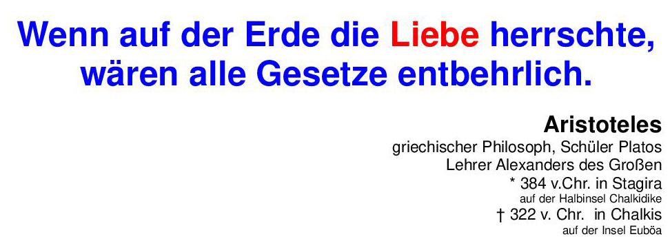 Wenn auf der Erde die Liebe herrschte, wären alle Gesetze entbehrlich. Aristoteles