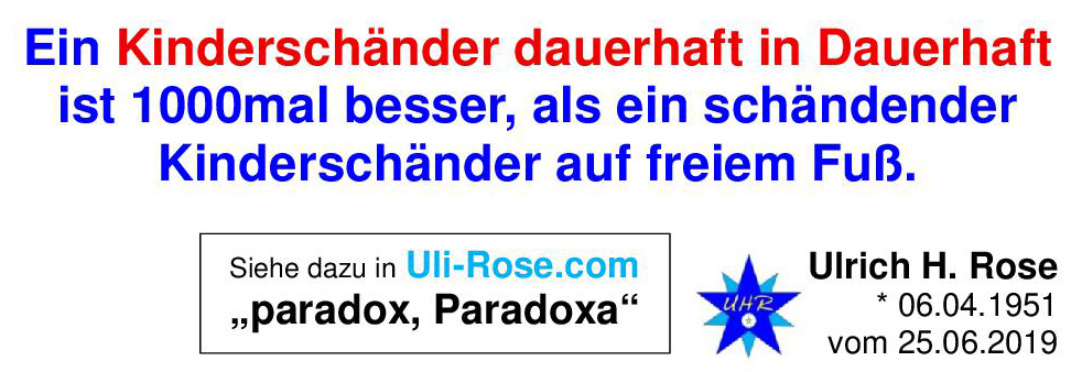 Ein Kinderschänder dauerhaft in Dauerhaft ist 1000mal besser als ein schändender Kinderschänder auf freiem Fuß. Ulrich H. Rose vom 25.06.2019