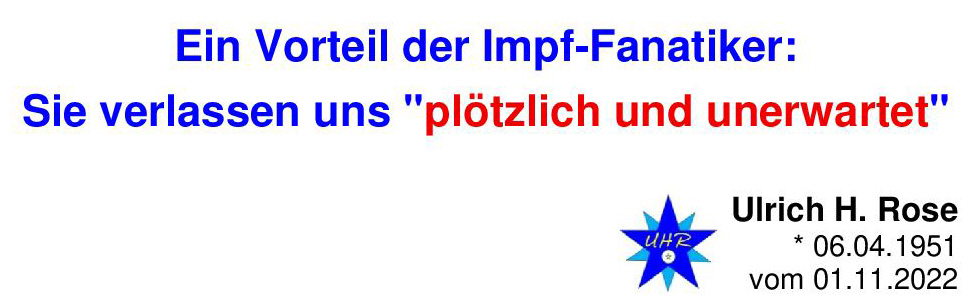 Ein Vorteil der Impf-Fanatiker: Sie verlassen uns „plötzlich und unerwartet“. Ulrich H. Rose vom 01.11.2022