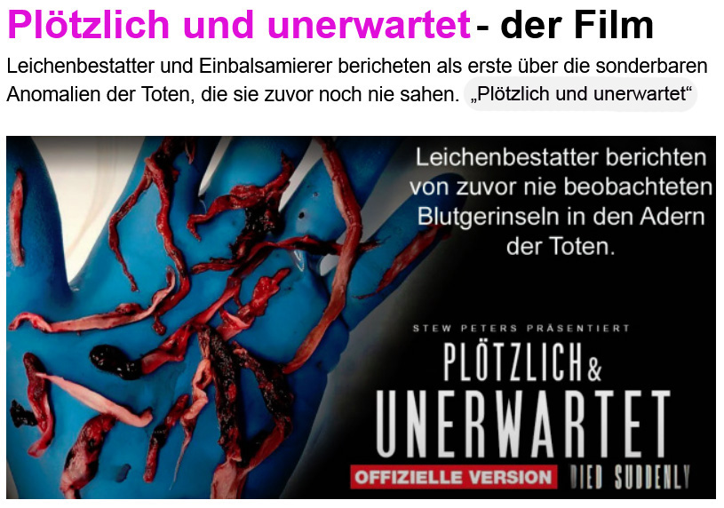 Plötzlich und unerwartet verstorben. Leichenbestatter berichten von zuvor nie beobachteten Blutgerinseln in den Adern der Toten.