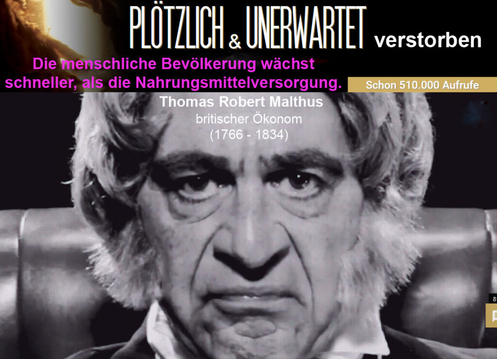 In dem Film „Plötzlich und unerwartet“ wird am Anfang der britische Ökonom Thomas Robert Malthus erwähnt, von dem die über 200 Jahre alte Theorie stammt. „Die menschliche Bevölkerung wächst schneller, als die Nahrungsmittelversorgung“