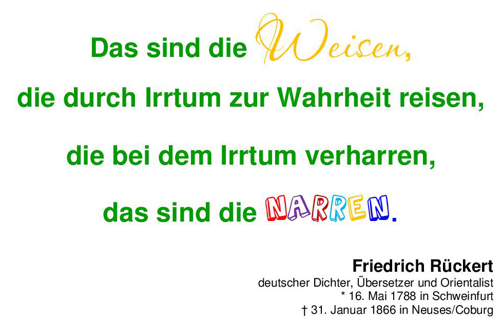Das sind die Weisen, die durch Irrtum zur Wahrheit reisen, die bei dem Irrtum verharren, das sind die Narren. Friedrich Rückert