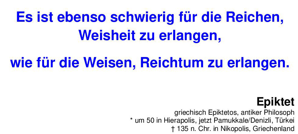 Es ist ebenso schwierig für die Reichen, Weisheit zu erlangen, wie für die Weisen, Reichtum zu erlangen. Epiktet