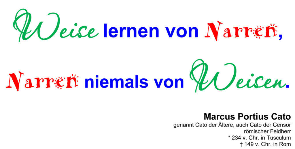 Weise lernen von Narren, Narren niemals von Weisen. Marcus Portius Cato