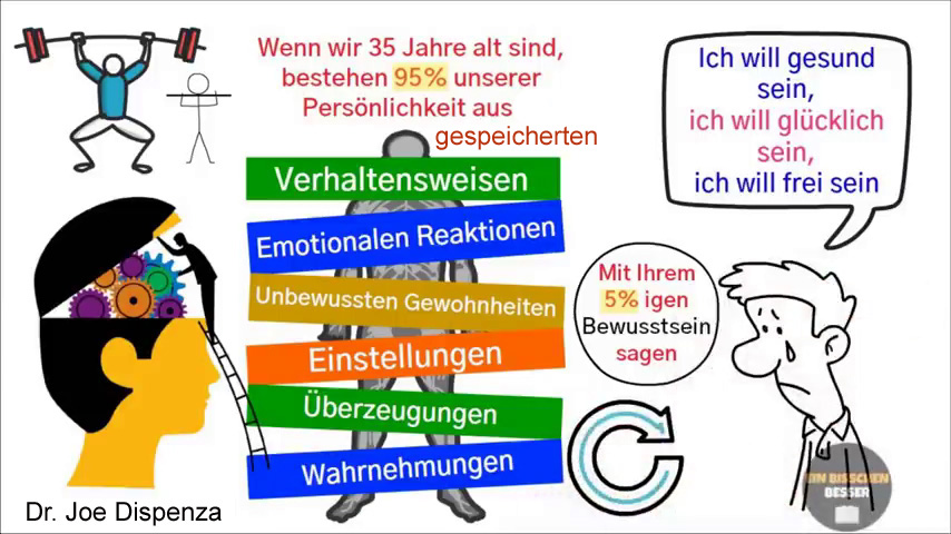 Wenn wir 35 Jahre alt sind, bestehen 95% unsere Persönlichkeit aus gespeicherten Verhaltensweisen, emotionalen Reaktionen, unbewussten Angewohnheiten, Einstellungen, Überzeugungen, Wahrnehmungen. Dr Joe Dispenza