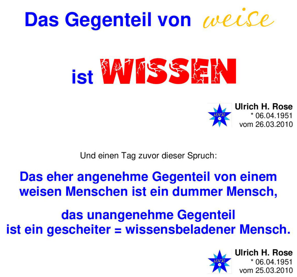 Das Gegenteil von weise ist Wissen. Ulrich H. Rose vom 26.03.2010.