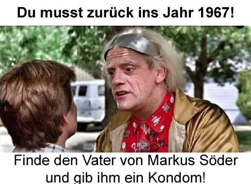 Du musst zurück ins Jahr 1967! Finde den Vater von Markus Söder und gib ihm ein Kondom!