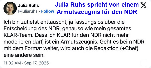 Wenn Du den langen Beitrag lesen möchtest, dann hier „NIUS vom 18.09.2025„, es dürfte aber ausreichen dies hier zu lesen: