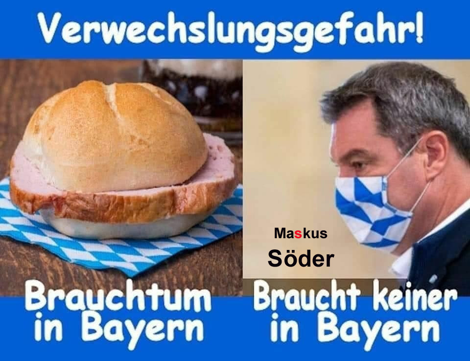 Verwechslungsgefahr! Brauchtum in Bayern. Maskus Söder braucht keiner in Bayern.