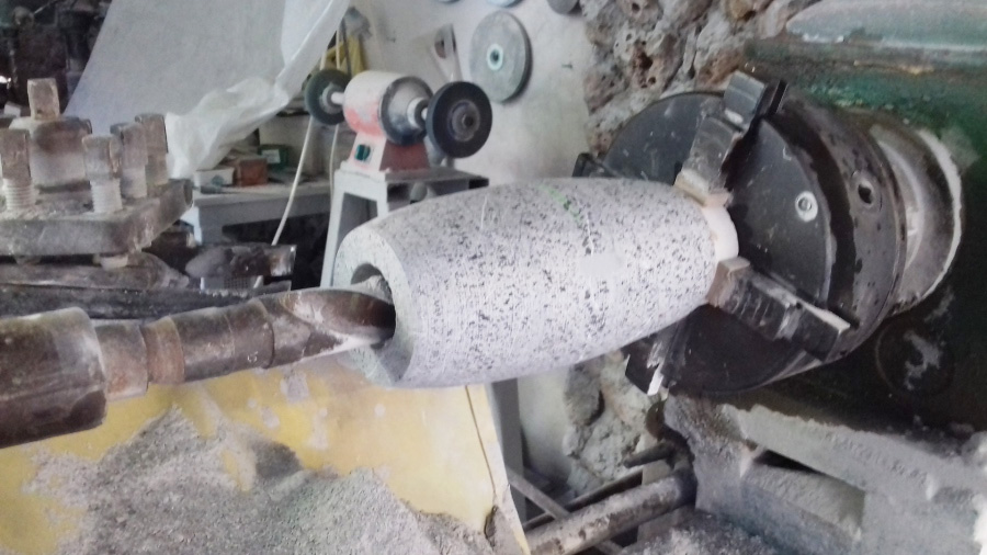 Das Drehen und Aushöhlen einer Steinvase mit Diamantwerkzeugen bei Ali Aktaş am 21.09.2018