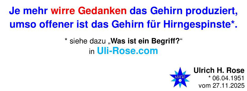 Je mehr wirre Gedanken das Gehirn produziert, umso offener ist das Gehirn für Hirngespinste*. Ulrich H. Rose vom 27.11.2025