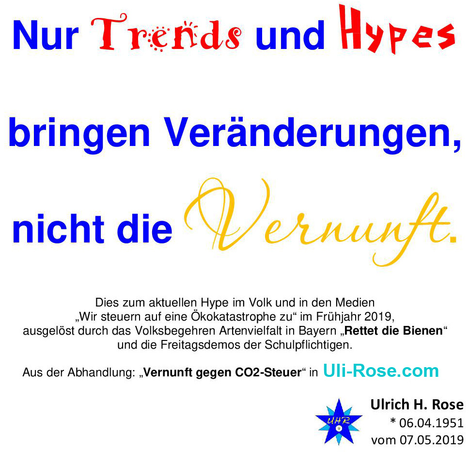 Vernunft gegen CO2-Steuer? Ulrich H. Rose vom 07.05.2019.