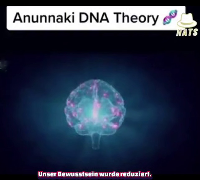 Siehe dazu erst Mal das Video „Die Anunnaki-DNA-Theorie„. Dort ist auch dieses Bild mit der Information „Unser Bewusstsein wurde reduziert“ enthalten: