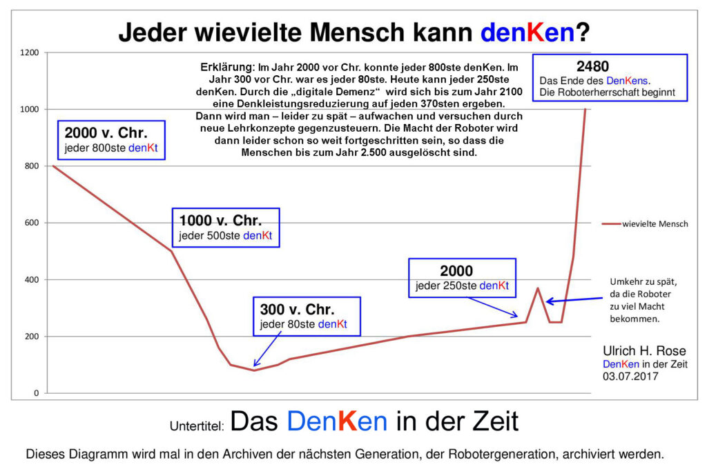 Jeder wievielte Mensch kann denKen? Das Denken in der Zeit und die Denkleistungsreduzierung durch digitale Demenz ab dem Jahr 2000. Ulrich H. Rose vom 03.07.2017.