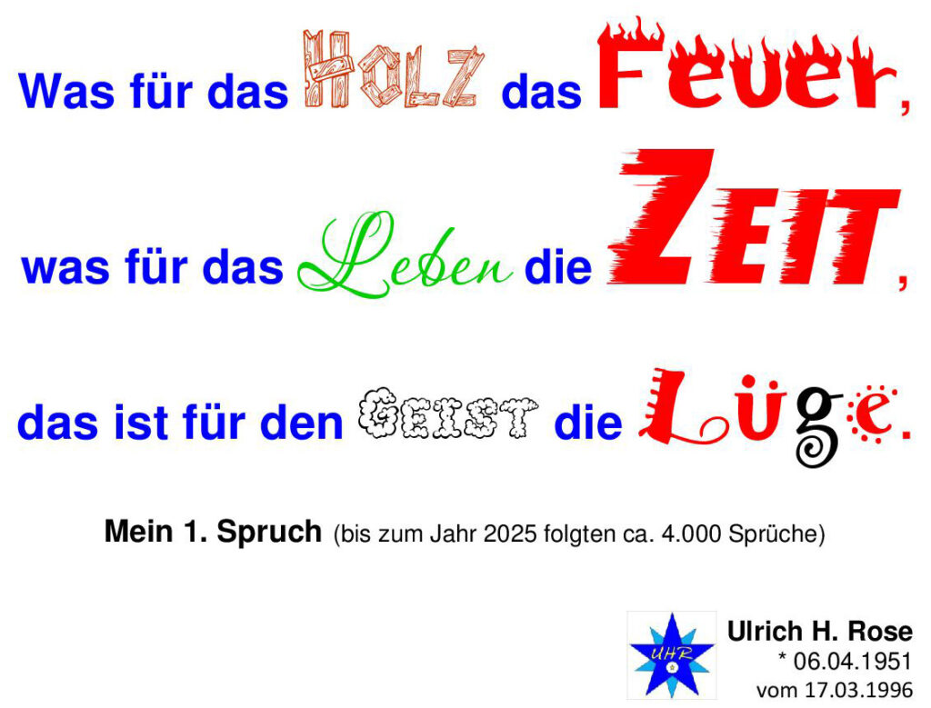 Was für das Holz das Feuer, was für das Leben die Zeit, das ist für den Geist die Lüge. Ulrich H. Rose vom 17.03.1996