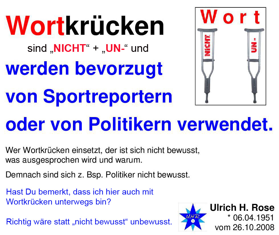 In einer Solidargemeinschaft muss eine offene Sprache an die Solidar-Schmarotzer möglich sein. Spruch von Ulrich H. Rose vom 30.12.2011