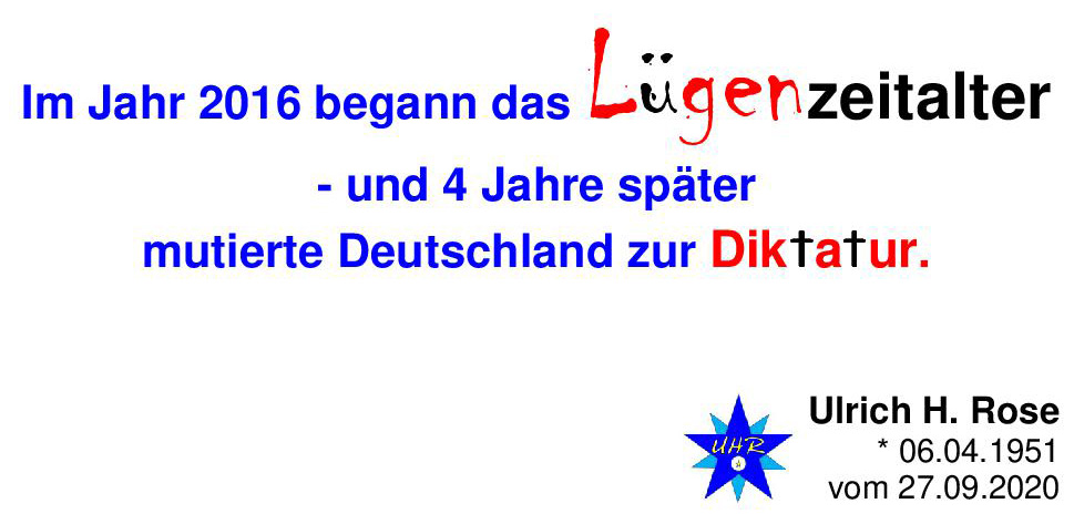 Im Jahr 2016 begann das Lügenzeitalter – und 4 Jahre später mutierte Deutschland zur Diktatur.