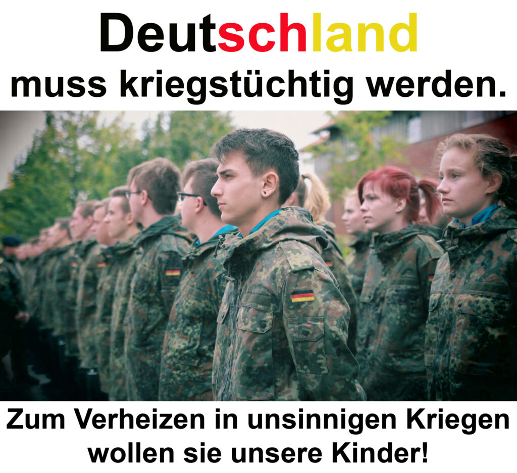Deutschland muss kriegstüchtig werden. Zum Verheizen in unsinnigen Kriegen wollen sie unsere Kinder!