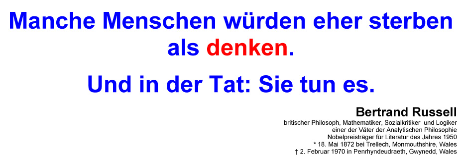 Dazu ein Spruch vom englischen Philophen Bertrand Russell, den ich sehr schätze: