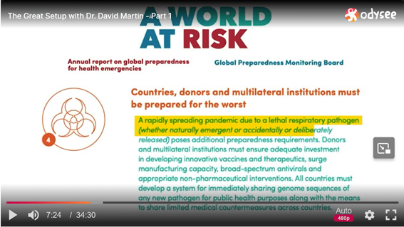 Dr. David Martin macht deutlich, dass die gesamte COVID-19-Pandemie kein zufälliges Ereignis war, sondern eine geplante und über Jahre vorbereitete Aktion. Bereits 2015 wurde in wissenschaftlichen Publikationen offen darüber gesprochen, dass man die Akzeptanz für eine weltweite Impfkampagne schaffen müsse. Dieses Narrativ wurde dann im Oktober 2019 durch Event 201 bekräftigt, ein Planspiel, bei dem ein globaler Pandemieausbruch simuliert wurde.
